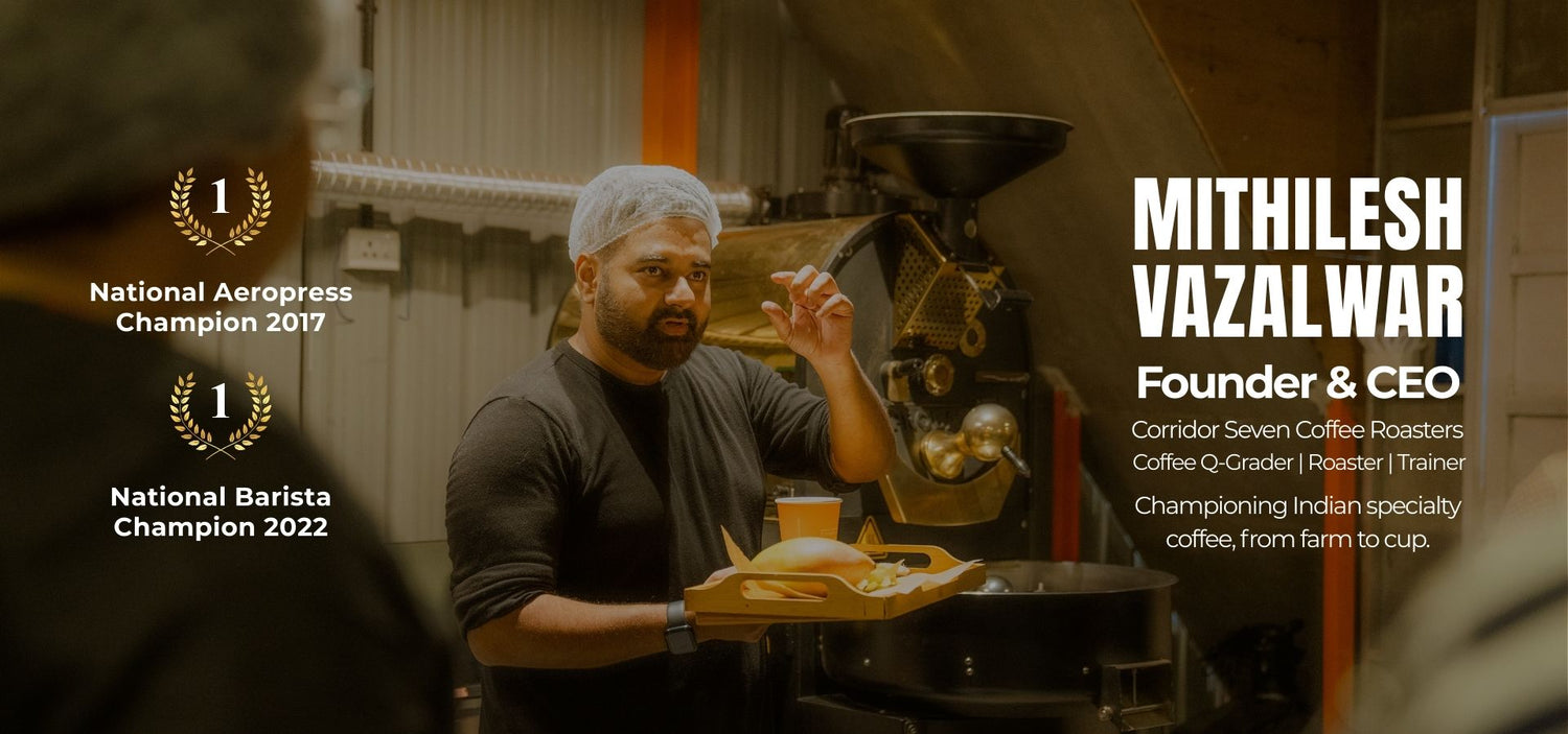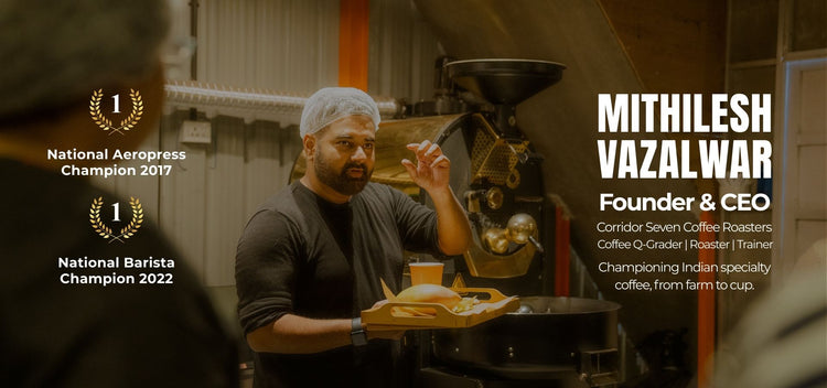 Mithilesh Vazalwar is the founder and CEO of Corridor Seven Coffee Roasters, a coffee company based in Nagpur with a global reach. He transitioned from a finance background to specialty coffee and has built a team that operates at international standards.